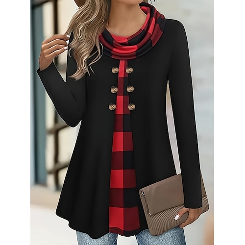 Per donna Blusa Plaid Elegante Casual Manica Lunga Scollo a Cascata Top Regolari Quotidiano Bottoni Stampato Bianco Rosso Blu Verde Cachi Primavera Autunno Inverno