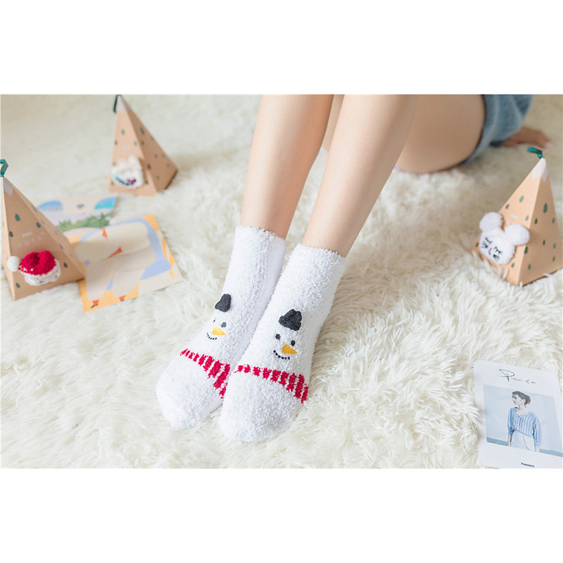 Christmas Women's Slipper Socks, Cartoon Coral Fleece Plush Crew Socks, Mid-Calf Fluffy Floor Socks, Christmas Holiday Cross-Border Edition