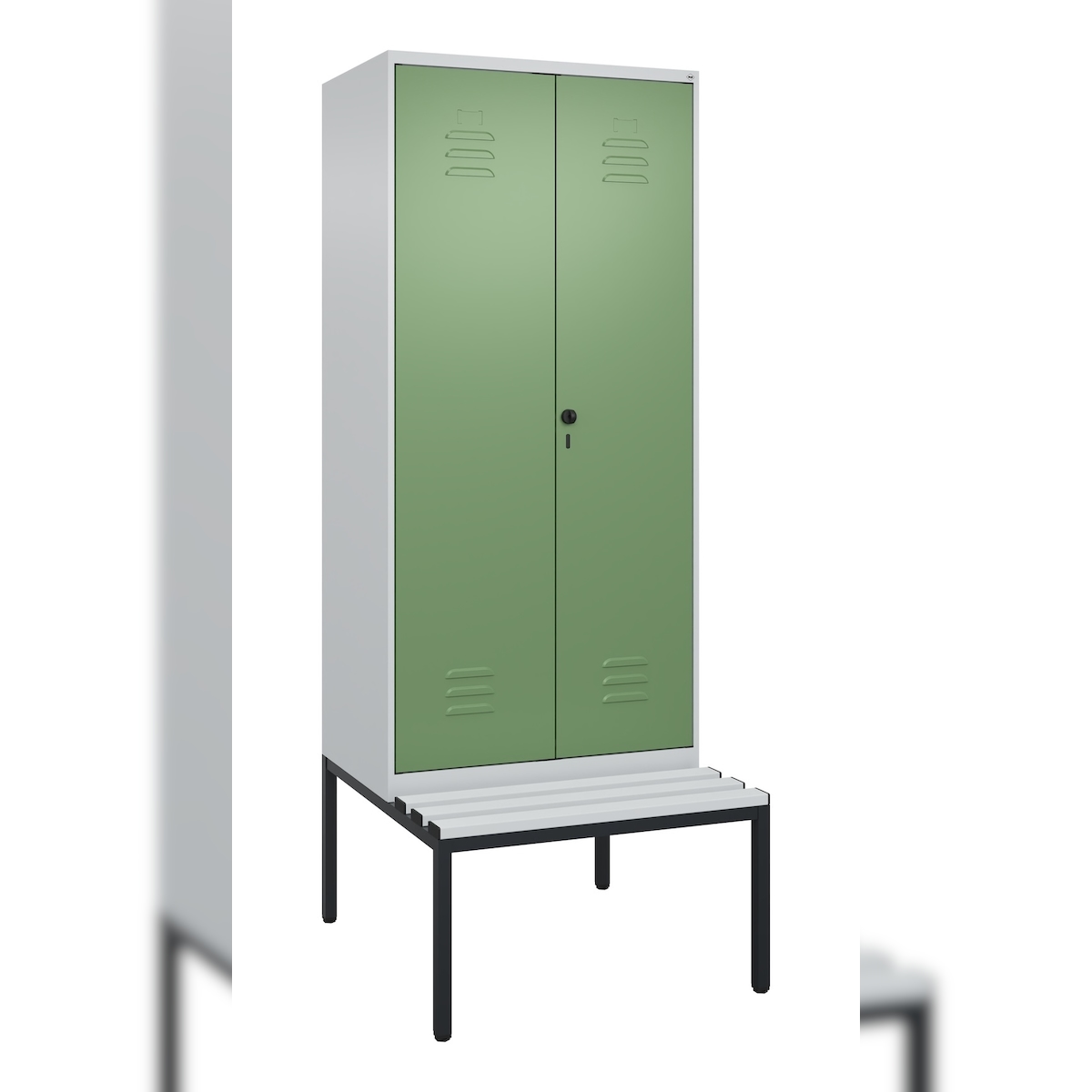 C+P Doppel-Spind Classic PLUS Kunststoff untergebaute Bank 2 Abteile Trennwand HxBxT 212x80x82cm Sicherheitsdrehriegel HellgrauResedagrün von PROREGAL