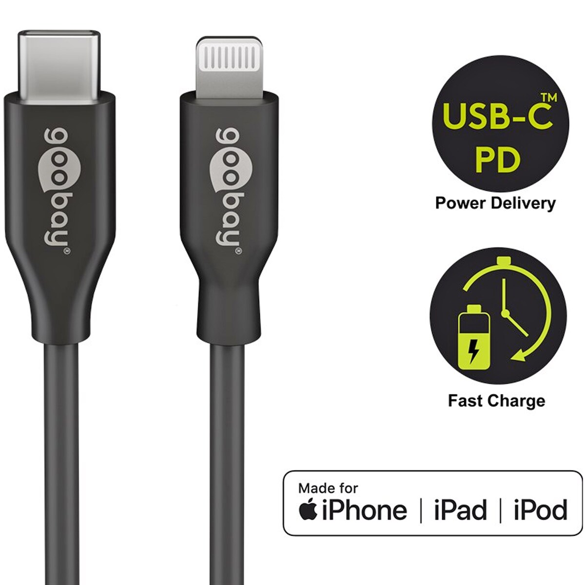 goobay Lightning USB-C Lade- und Synchronisationskabel, das MFi-Kabel für Apple iPhone, iPad Schwarz