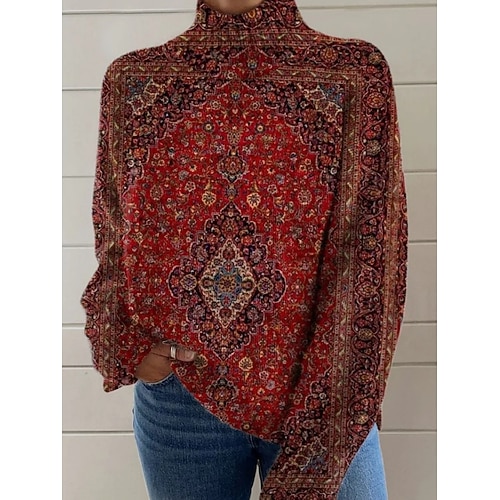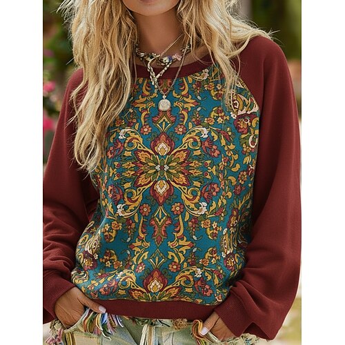 Per donna Felpa Pullover Floreale Grafico Vintage Casual Manica Lunga Girocollo Top Regolari Casa Lavoro Streetwear Stampato Vino Marrone Beige Primavera Autunno Inverno
