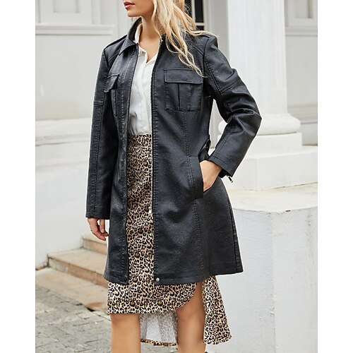 Per donna Giacca in Ecopelle Trench Trench in pelle Confortevole Bottoni Casual Semplice All'aperto Vacanza Ferie Uscire Lungo Collo ripiegato Vestibilità regolare Manica Lunga Capispalla Nero Vino