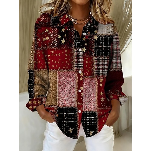 Per donna Camicia Blusa Plaid Casual Manica Lunga Colletto a Camicia Top Regolari Quotidiano Patchwork Bottoni Stampato Blu Giallo Vino Arancione Verde Autunno Inverno