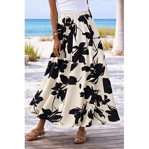 Per donna Gonna da vacanza Elegante Moda Casual Maxi Vita Alta Gonne Floreale Grafico Tasca Stampato Micro-elastico Quotidiano Vacanza Bianco Verde Estate 95% poliestere 5% spandex