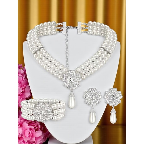set di collana e orecchini di perle da donna anni '20 - gioielli con perline finte a tre strati con spilla di strass, accessori vintage in stile flapper Gatsby per cocktail party, matrimoni e feste a