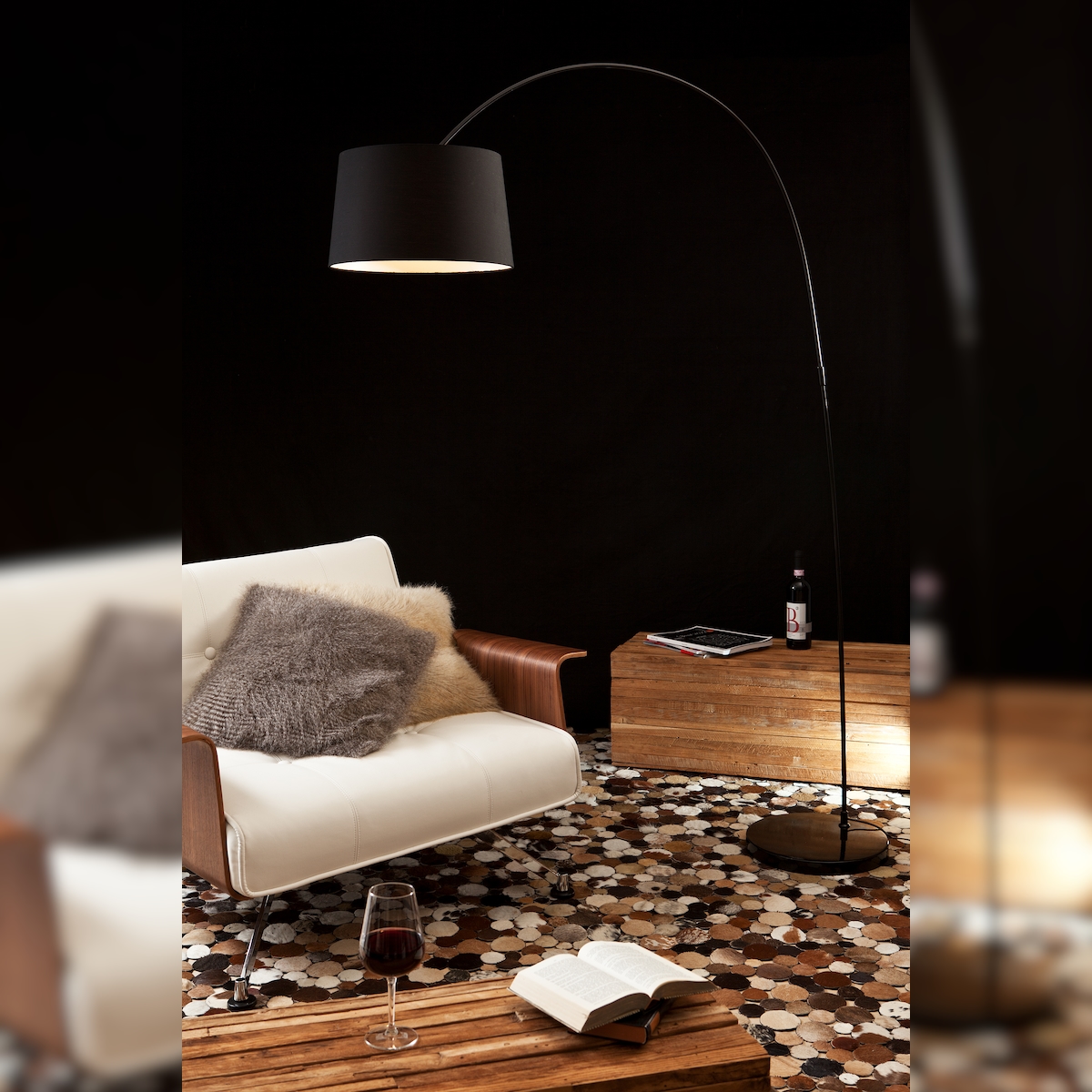 SalesFever Bogenlampe 205 cm | Ø Lampenschirm 40 cm | echter Marmorfuß | B 135 x T 36 x H 205 cm | schwarz