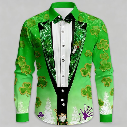 Festa di San Patrizio Per uomo Trifoglio Colletto finto e design del vestito Camicia Camicia con Bottoni Manica Lunga Moda Casual Feste Ferie Primavera Autunno Collo ripiegato Stampa 3D camicie con