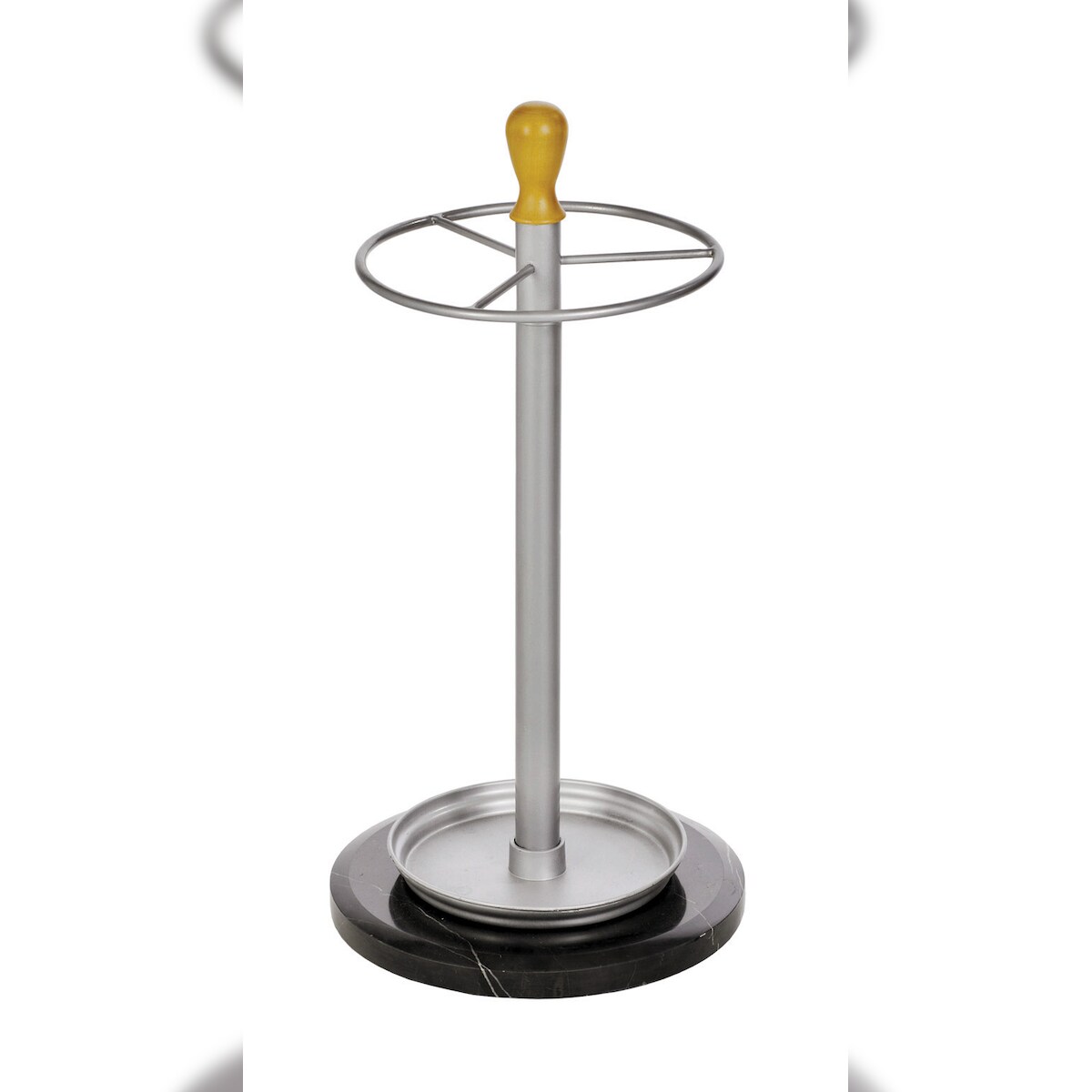 ALCO Schirmständer, Metall, silber, pulverbeschichtet, Marmorstandfuß, Abtropfschale, hellem Holzkopf