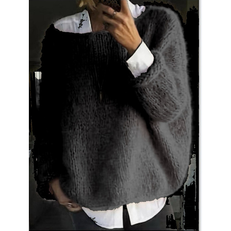 Women's Sweater Pullover Elegant Fashion Streetwear Solid Color Crew Neck Knitted Long Sleeve Regular Tops Knit Outdoor Home Work Blue Pink Fall Winter