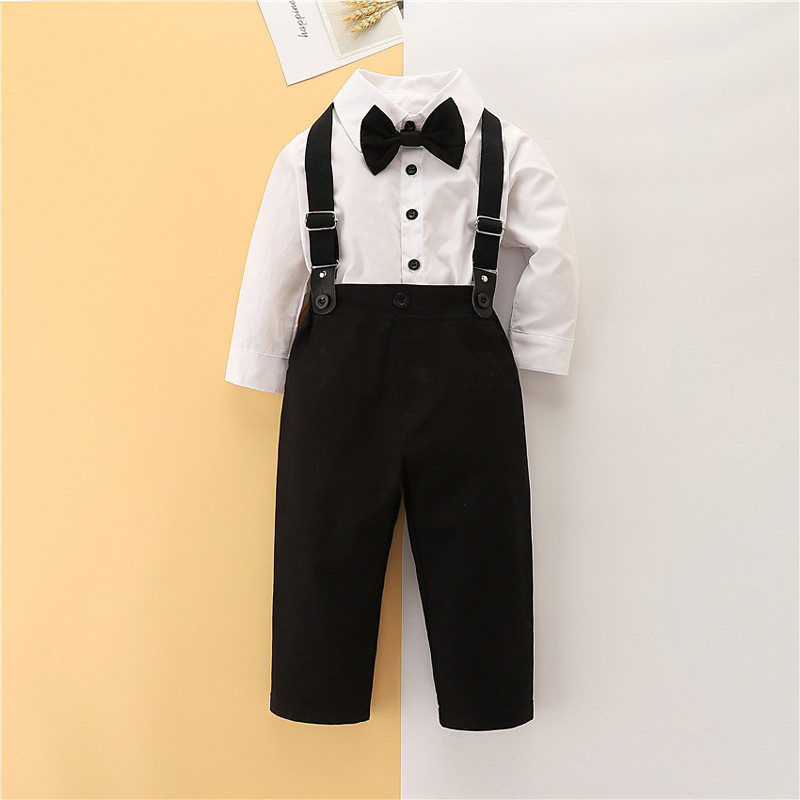 Boys' 3D Solid Color Shirt Pants Long Sleeve Other Prints Spring Fall Fashion Gentle Toddler 1-5 Years Crew Neck Outdoor Anniversary Loose Fit