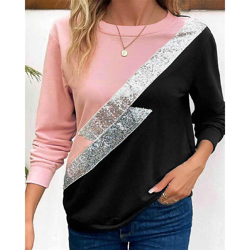 Women's T Shirt Solid Color Color Block Elegant Vintage Fashion Long Sleeve Crew Neck Regular Tops Daily Going out Weekend Patchwork Print Pink Fall Winter