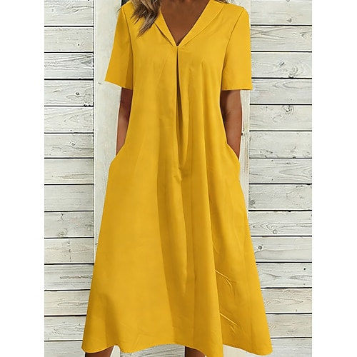 Per donna Abito Midi Finto cotone e lino Abito a Tubino Vestito Casual Abito Elegante Elegante Moda Moderno All'aperto Vacanza Uscire Vestibilità comoda Semplice Manica Corta Girocollo Blu Giallo