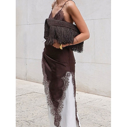 Per donna Mini Abito Abito nero Abito in Pizzo Abito Sottoveste Elegante Moda Classico Quotidiano All'aperto Spiaggia Vestibilità comoda Semplice Senza Maniche Scollo a V Giallo Chiaro Nero Marrone