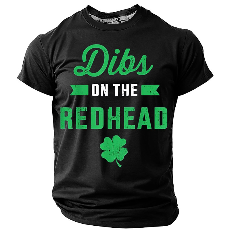 St. Patrick Men's Dibs On The Redhead Shamrock T Shirt Short Sleeve T shirt 3D Print Crew Neck Shirt Designer Casual Party Holiday Club Black Green Gray Summer Spring Clothing Apparel S M L XL XXL XXX