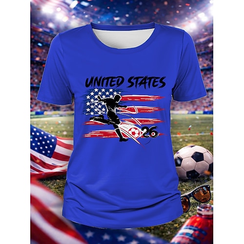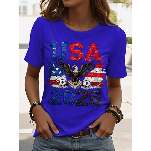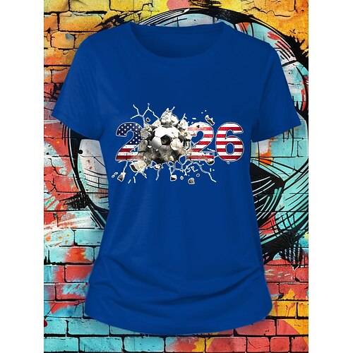Maglietta da Donna World Soccer Match 2026 Stampa Grafica Lettera Elegante Classica Casual Maniche Corte Collo Tondo Lunghe Top Giornalieri Blu Rosso Rosso Blu Estate Primavera