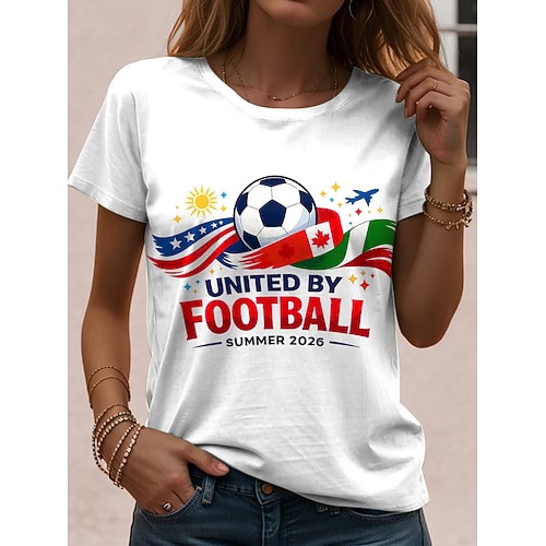 Maglietta da Donna World Soccer Match 2026 Stampa Grafica Lettera Elegante Classica Casual Maniche Corte Collo Tondo Regular Top Giornalieri Blu Nero Bianco Rosso Verde Estate Primavera