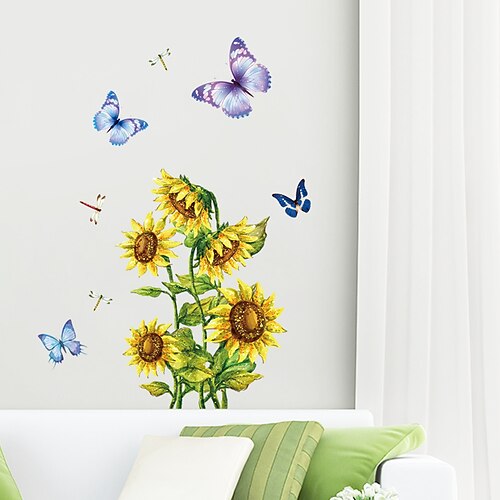 Adesivo murale a forma di girasole e farfalla, rimovibile, per cameretta dei bambini, asilo, parco giochi, arredamento per la casa, creativo, decorativo, luminoso, colorato, divertente, sfondo per