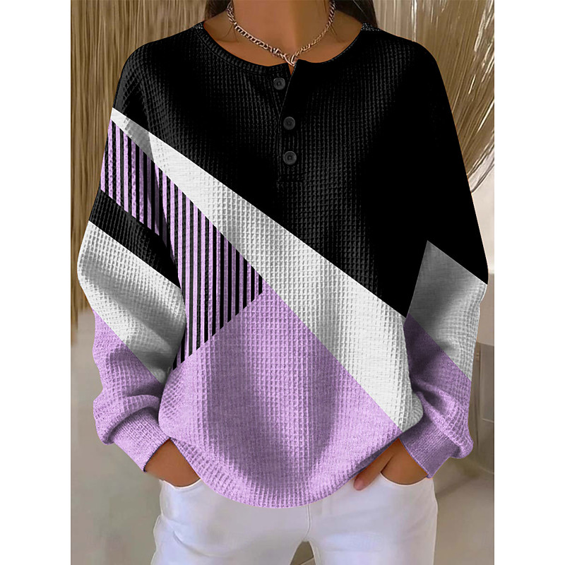 Women's Hoodies Graphic Geometric Color Block Fashion Casual Print Long Sleeve Crew Neck Round Neck Regular Tops Casual Street Buttons Blue Purple Green khaki Fall Winter
