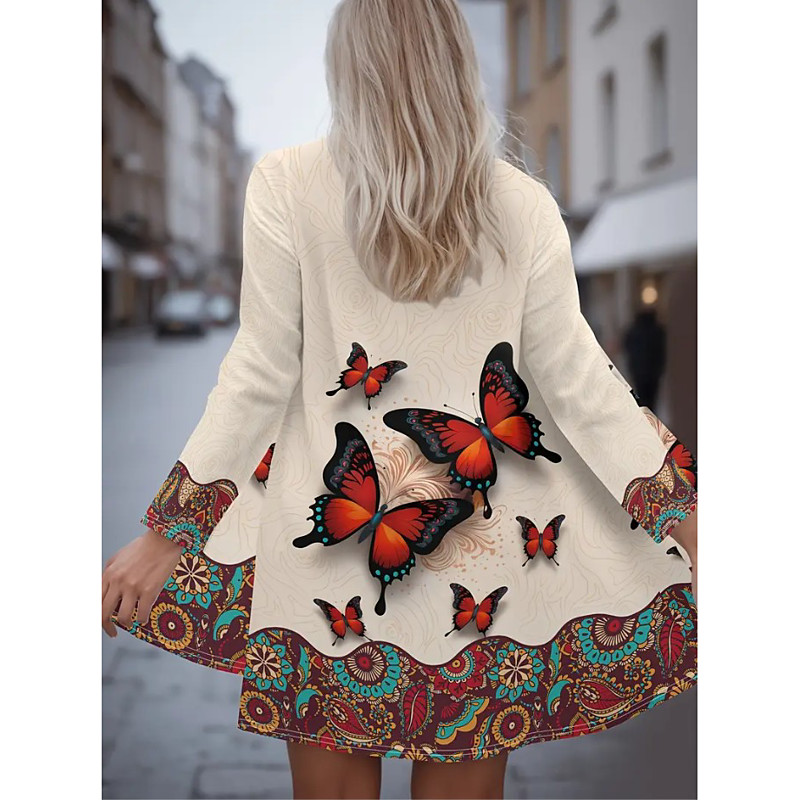 Women's Coat Warm Lightweight Print Fashion Butterfly Casual Regular Collarless Regular Fit Long Sleeve Outerwear Black White Beige Spring Fall