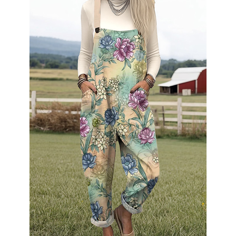 Women's Overall Active Floral Sleeveless Round Neck Pocket Print Vacation Daily Loose Fit Yellow Blue Orange Spring
