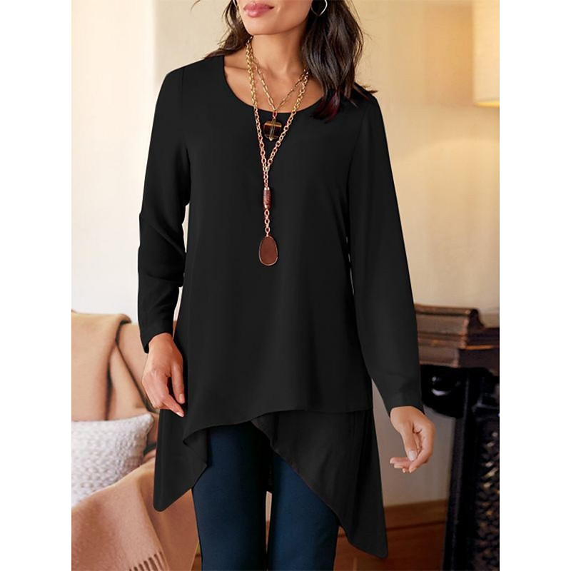 Women's Blouse Solid Color Stylish Casual Long Sleeve Crew Neck Long Tops Daily Ruffle Black Blue Khaki Spring Fall