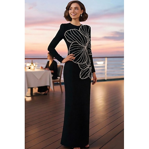 Abito a tubino colonna lungo fino al pavimento abiti formali abito da sera abito da sera elegante maniche lunghe scollo tondo formale con cristalli e perline