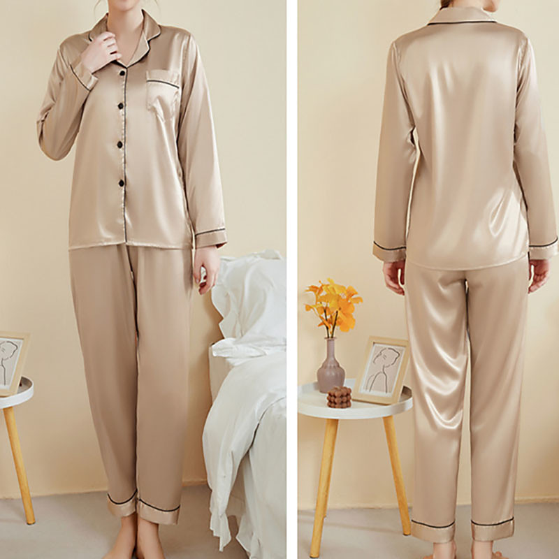 Women's Loungewear Pajama Set Fashion Casual Soft Pure Color Elastic Waist Buttons Pant Home Vacation Long Sleeve Lapel Blue Lotus Pink Black Champagne Pink Summer Spring Fall Regular Fit