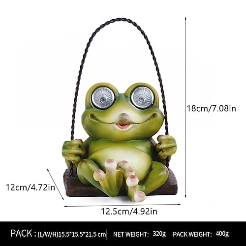 Wasserdichte, solarbetriebene Hängeleuchte in Froschform aus Kunstharz, dekorative LED-Beleuchtung für Garten, Terrasse, Balkon, Hof, Wege und Villenlandschaft – 18 x 12 x 12,5 cm