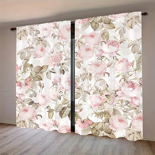 2 tende con stampa floreale e vegetale, tende in poliestere con passante per asta, tende con stampa botanica verde per soggiorno, camera da letto, cucina, dormitorio, decorazione per la casa.