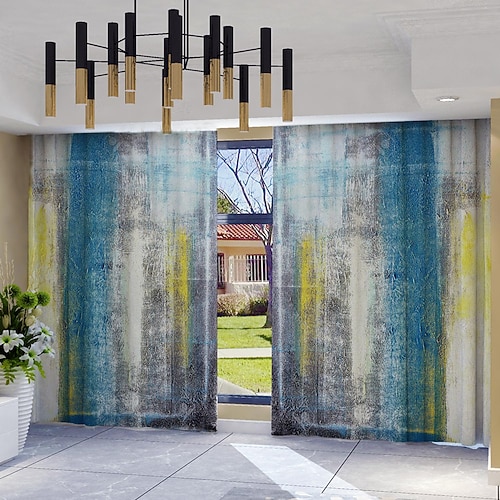 2 tende con motivi geometrici, pannelli per finestre in poliestere con tasca per asta, tende moderne con motivo astratto, lavabili in lavatrice, adatte per soggiorno, camera da letto, cucina, studio,