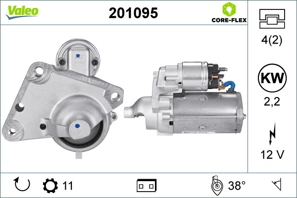 Käynnistin 12V Valeo Valeo core-flex 201095 - suzuki, citroën, mini, opel, ds, peugeot - OE 12 41 7 794 971, 12 41 7 805 098, 12417794971