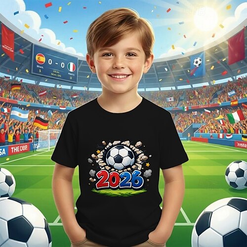 100% Cotone Bambini Ragazzi Nero Bianco Grafico Calcio Magliette da calcio Maglietta Blusa Girocollo Manica Corta All'aperto Abbigliamento Quotidiano Moda Streetwear Designer Stampa Estate