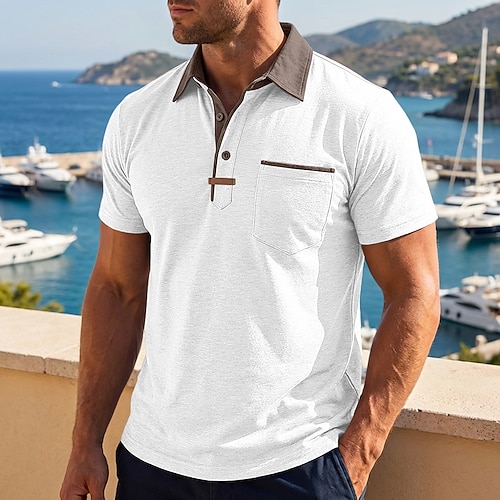 Per uomo Polo Maglia da golf Casuale Sportivo Classico Manica Corta Moda Cool Blocco di colori Patchwork Bottoni Estate Primavera Autunno Vestibilità regolare Bianco Verde Polo