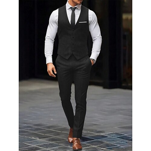 Uomo Completi Matrimonio Abbigliamento da sera Nero Bianco Primavera, Autunno, Inverno, Estate Tuta Moda Quotidiano Tinta unita Vestibilità standard 2 pezzi