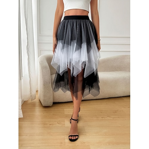 Per donna Gonna da vacanza Elegante Moda Carino Casual Midi Vita media Gonne Blocco di colori Elastico in vita Orlo irregolare Stratificato Micro-elastico Quotidiano Vacanza Lilla Bianco Rosa Rosso