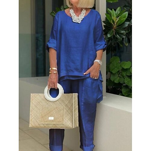Per donna Camicia Set da due pezzi 100% cotone Pantaloni di Lino Pantaloni Manica Lunga Colletto a Camicia Tinta unica Coulisse Moda Streetwear Abbigliamento quotidiano Data Nero Bianco Arancione