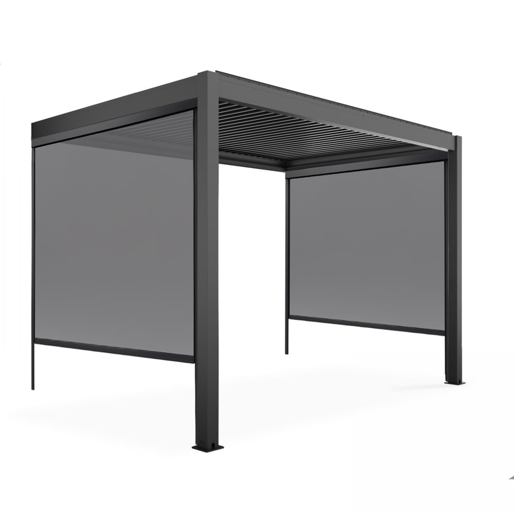 Pergola bioclimatica ad angolo 3x3m e 2 tende 2,66x2,4m