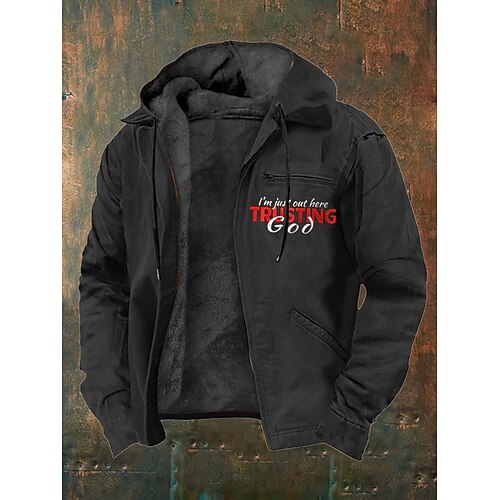 Per uomo Felpa con cappuccio a zip intera Giacca in Pile Felpa con cappuccio in pile Nero Con Cappuccio Lettera Tasca Stampato Sport Outdoor Casuale Quotidiano Poliestere Streetwear Retrò Casual