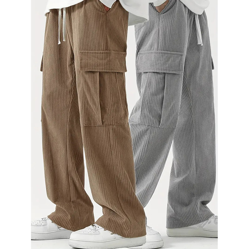 Multi Packs 2pcs Men's BlackBrown Sweatpants Corduroy Pants Trousers Drawstring Elastic Waist Plain Vacation Daily Wear Polyester Spring