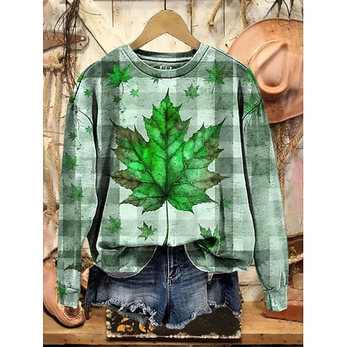 Per donna Felpa Pullover Floreale Plaid Casual Manica Lunga Girocollo Top Regolari Casuale Streetwear Abbigliamento Quotidiano Verde Primavera Autunno Inverno