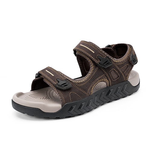Sandali sportivi da uomo marroni per attività all'aperto, regolabili con chiusura a strappo, a punta aperta, comodi da indossare in spiaggia, per viaggi, escursioni, tempo libero all'aperto, abbigliamento estivo quotidiano e stile casual da avventura.