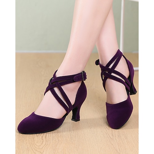 scarpe da ballo da donna in pelle scamosciata rossa con cinturino incrociato e tacco medio - calzature professionali per spettacoli latini e da sala