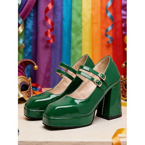 Scarpe Mary Jane da donna con plateau, in similpelle verniciata rossa, con doppia fibbia, perfette per carnevali, sfilate e celebrazioni di festival