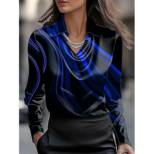 Per donna Camicia Ombre Grafico Elegante Casual Manica Lunga Scollo a Cascata Top Regolari Lavoro Abbigliamento da sera Quotidiano Arricciato Drappeggiato Nero Marrone chiaro Marrone Verde Estate