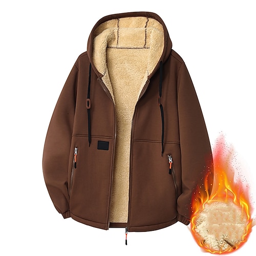 Per uomo Felpa con cappuccio a zip intera Felpa con cappuccio e zip Sherpa morbido Felpa con cappuccio in pile Nero Rosso Verde Grigio chiaro Grigio scuro Con Cappuccio Semplice Con zip Cerniera Tasca