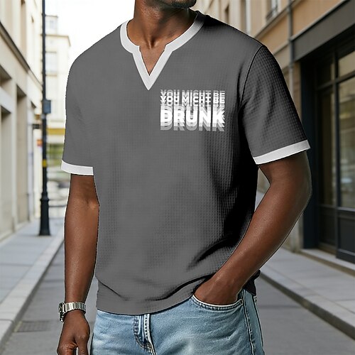 Herren-T-Shirt mit lustigem Aufdruck „Du könntest betrunken sein" – graues Waffelstrick-T-Shirt mit V-Ausschnitt und kurzen Ärmeln. Lässig, normale Passform, ideal für Bar, Club, Ausgehen und