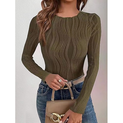 Per donna Maglietta Tinta unica Elegante Essenziale Casual Manica Lunga Girocollo Top Regolari Quotidiano Nero Rosa Rosso Blu Verde Primavera Autunno Inverno