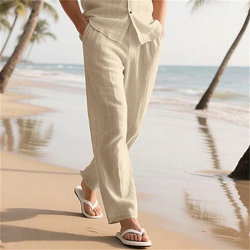 Men's Linen Pants Trousers Summer Pants Baggy Pants Beach Pants Drawstring Elastic Waist Straight Leg Plain Comfort Breathable Full Length Casual Daily Holiday Vacation Basic Black White