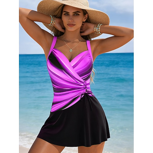 Per donna Costumi da bagno Costumi da bagno Taglio alto Costume da bagno Arricciato Vacanza Vintage Ombre Grafico Scollo a V Senza Maniche Costumi da bagno