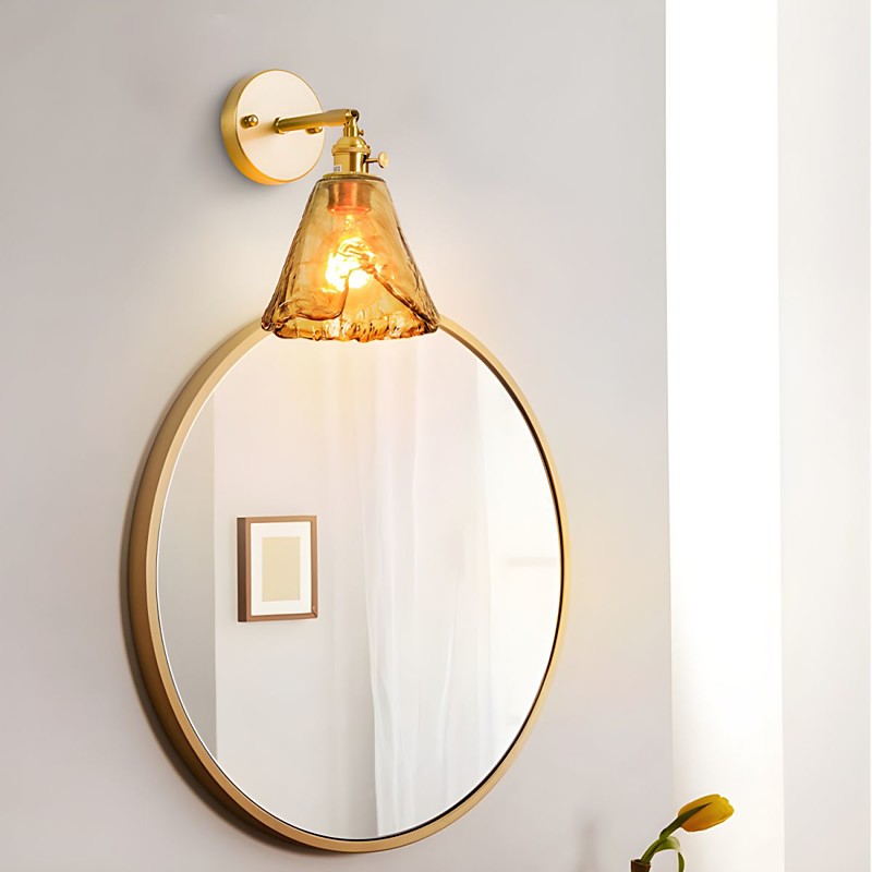 Modern Brass Wall Light Minimalist Sconces with Tea Color Glass Shade Wall Lamps with 90° Up and Down Adjustment 110-240V